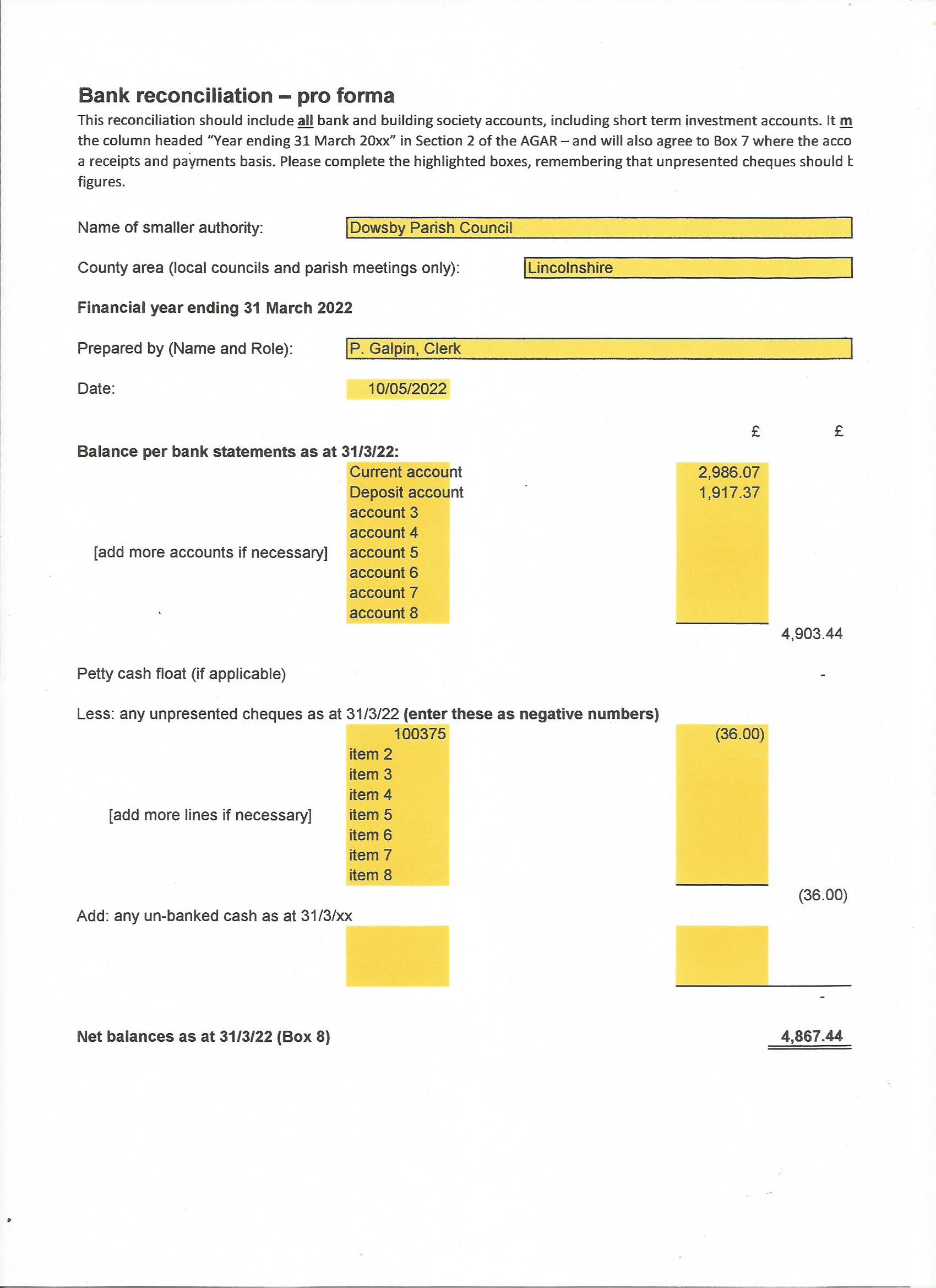 Bank reconciliation 2021-2022