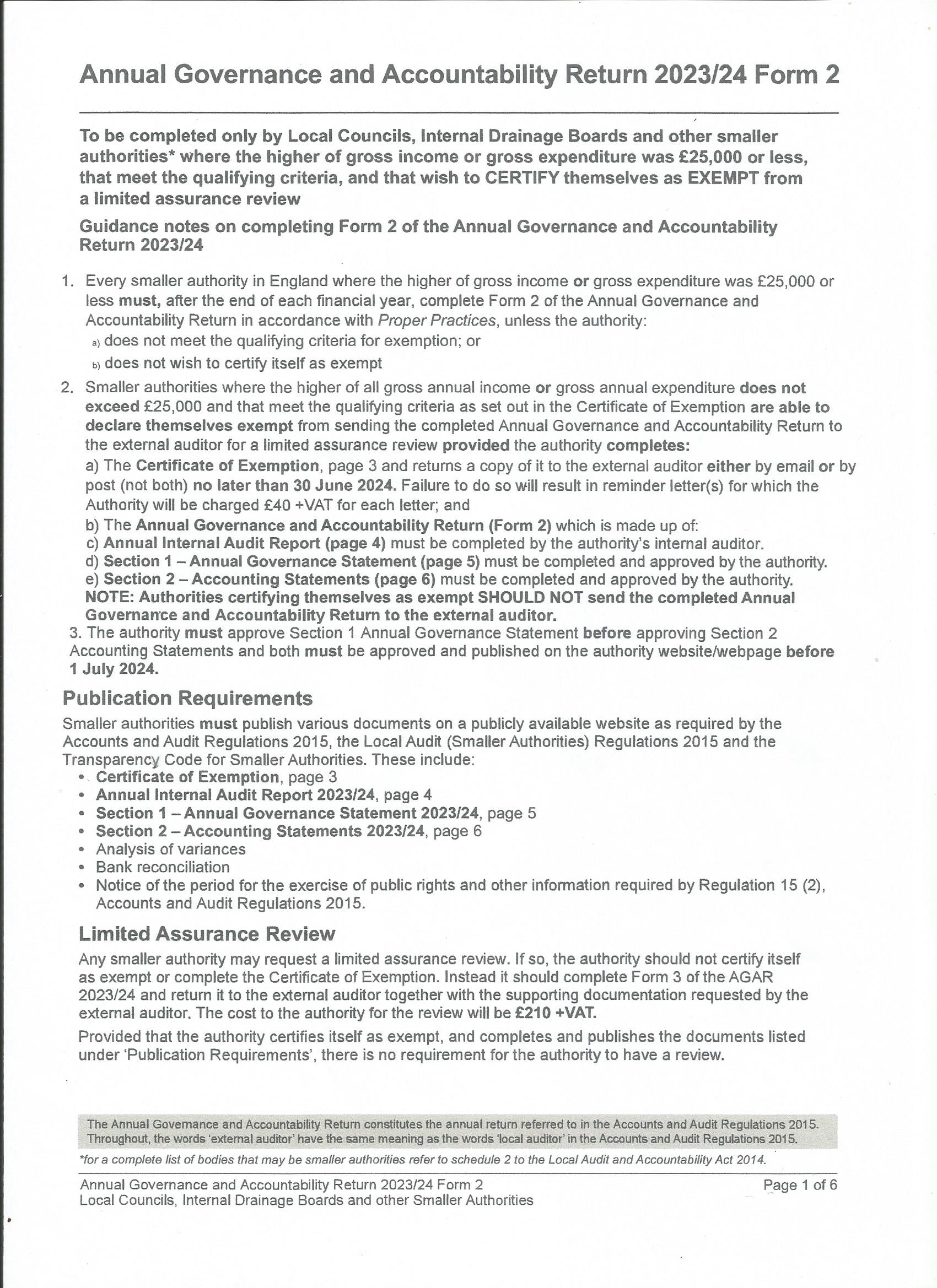 Page 1 of the AGAR form for 2023-2024