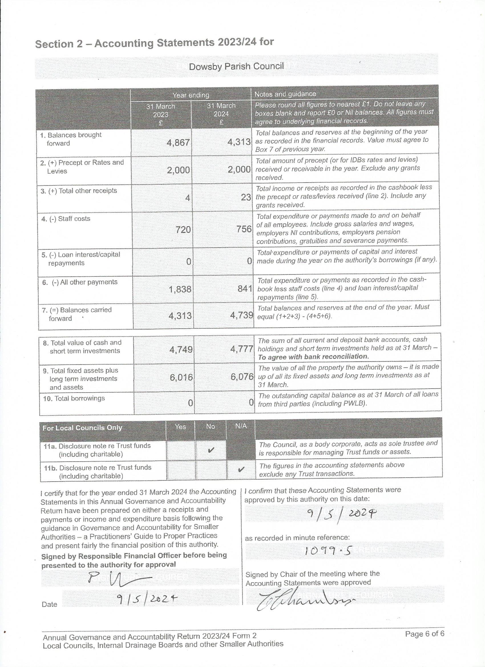 Page 6 of the AGAR form for 2023-2024