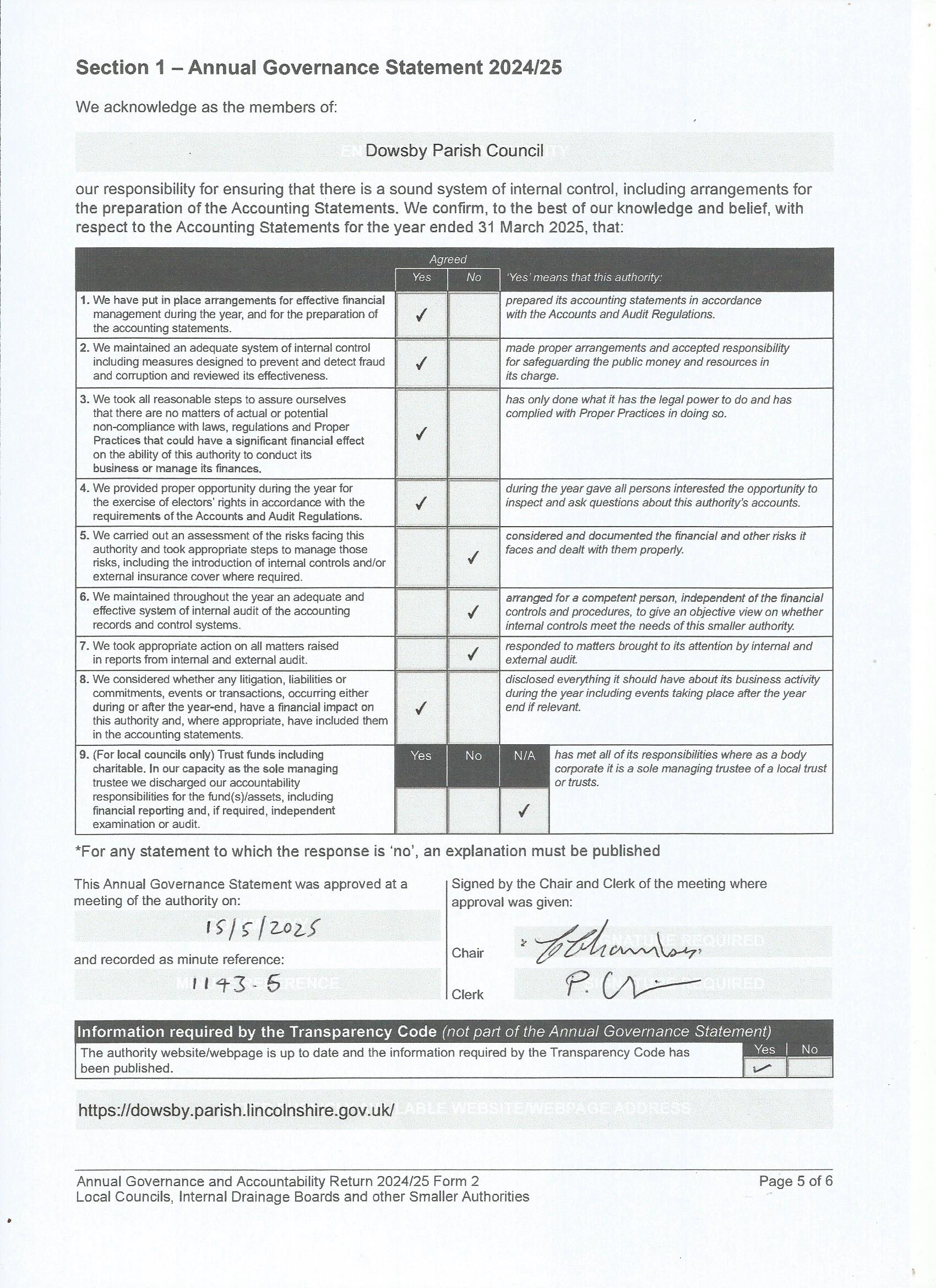 Page 5 of the AGAR form 2024-2025